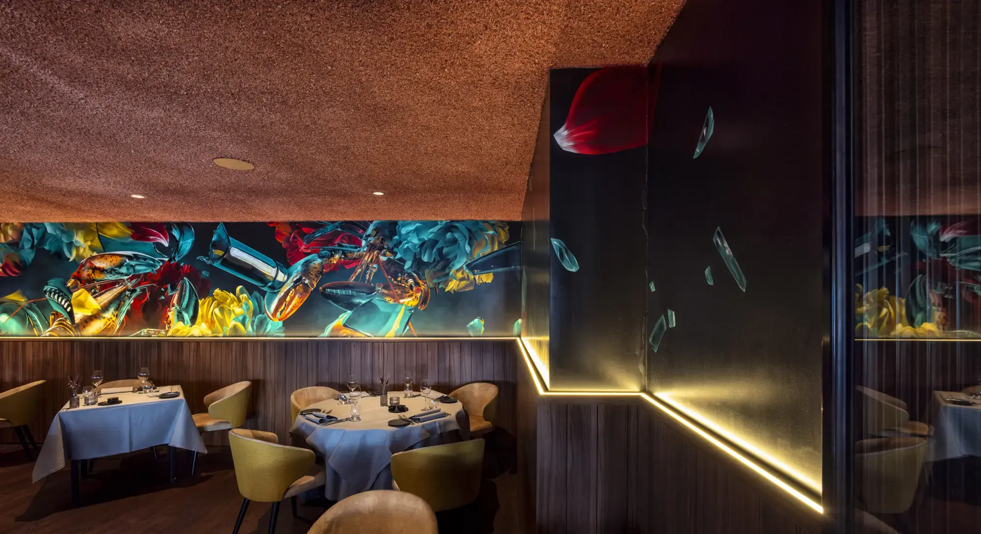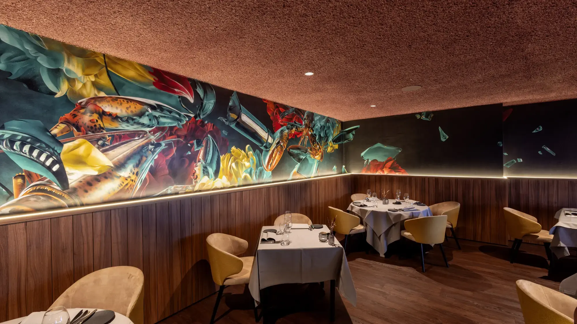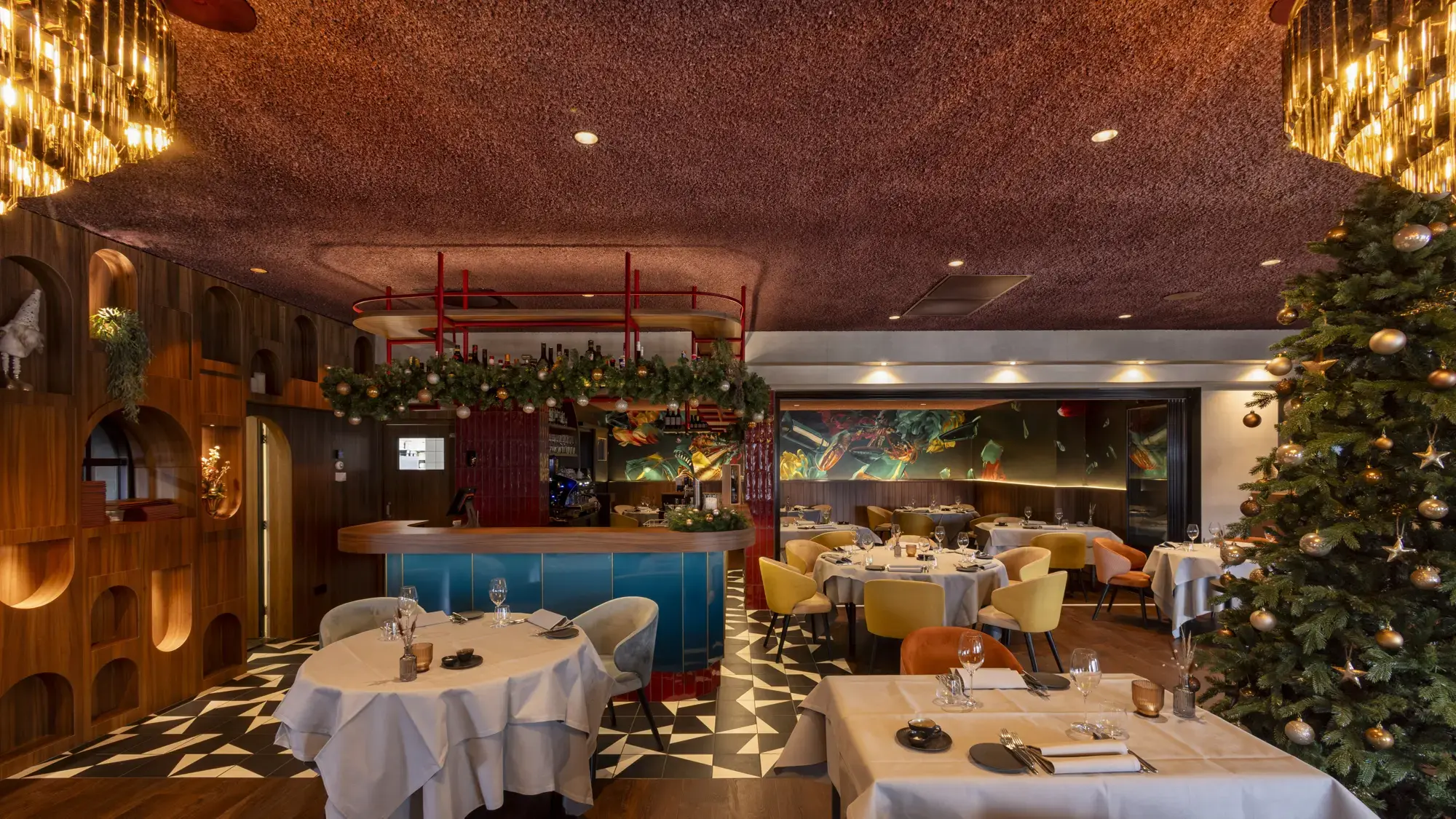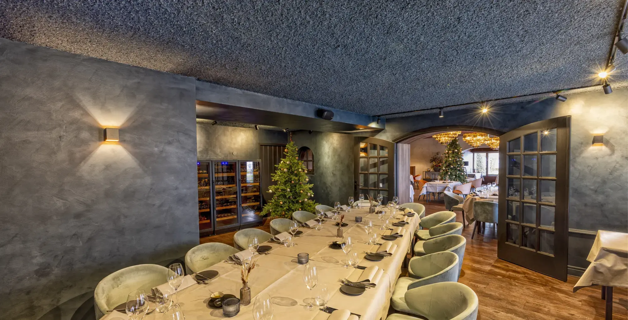 During the Christmas season, we had the wonderful opportunity to give Restaurant Duizel an acoustic makeover. Approximately 500m² is now finished with our Acomo® Style acoustic spray in Beige, Deep Blue, and Purple. This not only enhanced the restaurant visually but also significantly improved the acoustics, perfectly matching the festive atmosphere. We are delighted with the result and grateful for the opportunity to contribute to the comfort and ambiance of Restaurant Duizel.